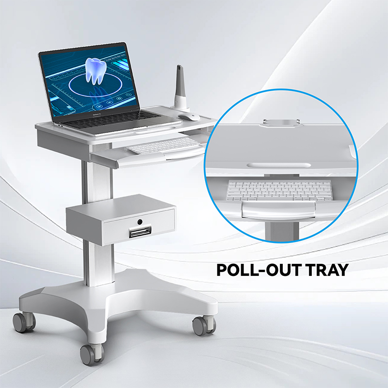 Эта универсальная медицинская тележка — революционное решение для стоматологических клиник и салонов красоты, разработанное для повышения эффективности рабочего процесса. Она оснащена специальным лотком для ноутбука для удобного ведения цифровых записей и работы с программным обеспечением, а также специальным держателем для орального сканера, который надежно защищает и легкодоступно размещает дорогостоящее сканирующее оборудование, избавляя от беспорядка и снижая риск повреждения устройств.
