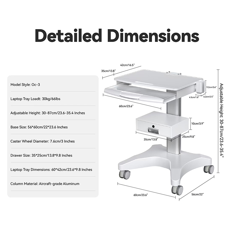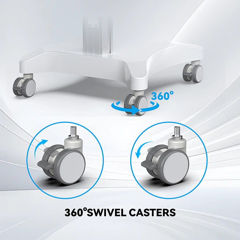 Тележка для ноутбука Likaymo оснащена четырьмя вращающимися на 360° роликами с ножными тормозами, что обеспечивает лёгкую маневренность и устойчивость. Независимо от того, перевозите ли вы инструменты или оборудование, плавно вращающиеся колёса обеспечивают лёгкую маневренность в клиниках, больницах или салонах красоты. Прочная рама обеспечивает устойчивость во время процедур, а фиксируемые колёса — надёжное позиционирование при необходимости.
