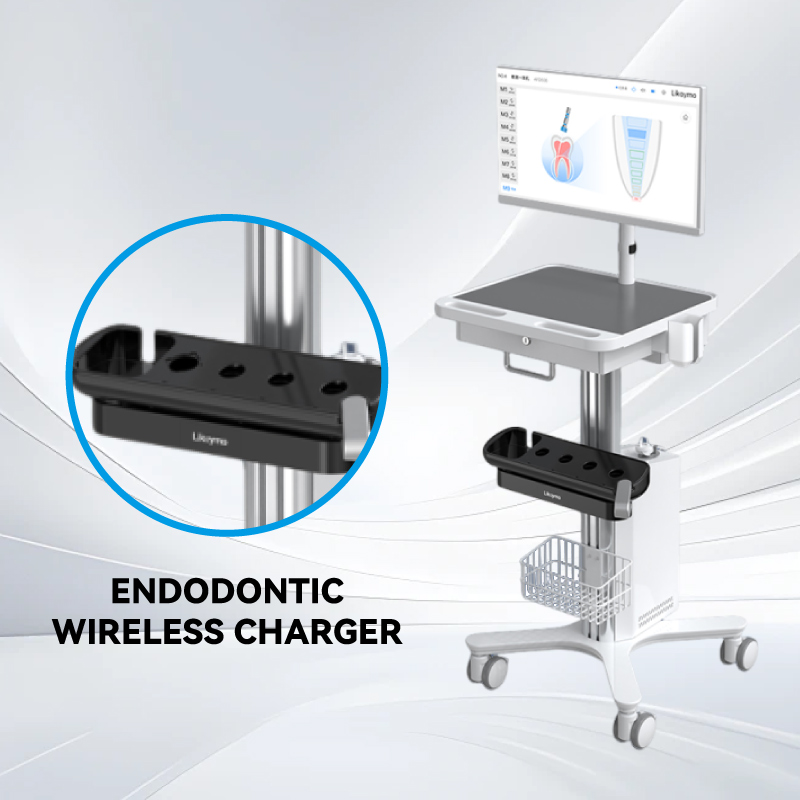 Беспроводное зарядное устройство Likaymo Endodontic Wireless Charger — неотъемлемая часть современной стоматологической рабочей станции. Разработанное специально для лечения корневых каналов, оно оснащено несколькими индукционными катушками для одновременной и удобной зарядки основных инструментов. Это беспроводное решение повышает эффективность работы клиники, обеспечивая постоянную готовность устройств к работе, а также способствует поддержанию чистоты и порядка на рабочем месте. Интеграция в мобильную тележку обеспечивает оптимизированный и эргономичный рабочий процесс.