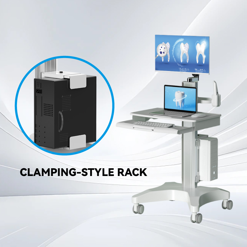 Эта прочная стойка с зажимным креплением, разработанная для медицинских тележек, обеспечивает надежную и организованную сборку компьютерных хостов и другого критически важного оборудования. Усиленная конструкция зажимов обеспечивает защиту от вибрации и надежную фиксацию, эффективно предотвращая перемещение или смещение во время транспортировки и ежедневной эксплуатации. Установка без инструментов обеспечивает быструю настройку и гибкую регулировку для легкой интеграции в различные клинические условия. Стабилизация устройств и обеспечение доступа способствуют повышению эффективности рабочего процесса и безопасности оборудования.