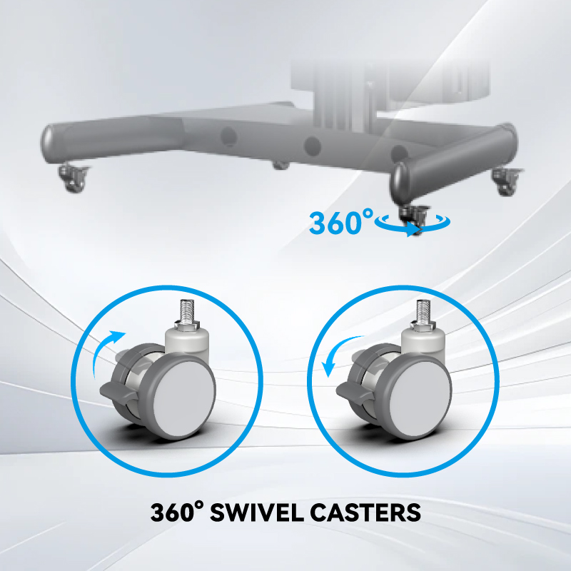 Газонаполненный рычаг обеспечивает лёгкую и регулируемую фиксацию мониторов и медицинских приборов. Пневматический цилиндр обеспечивает плавное перемещение по вертикали и горизонтали, надёжно фиксируясь на любой высоте и под любым углом. Это повышает эргономичность и эффективность рабочего процесса в клинических условиях, снижая нагрузку при длительном использовании.