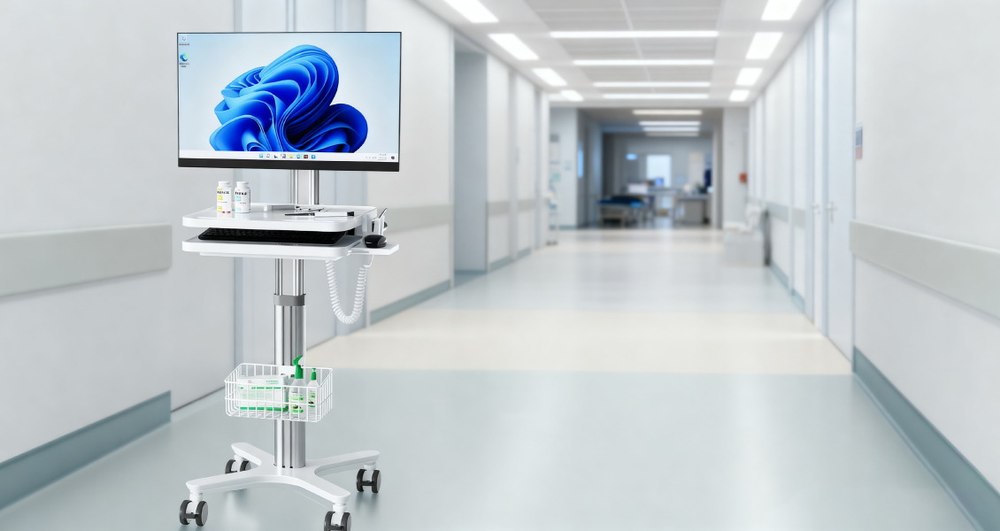 Эта медицинская тележка оснащена регулируемой по высоте колонной с цифровым дисплеем для мониторинга данных пациента в режиме реального времени. Её обтекаемая конструкция включает выдвижную полку для клавиатуры и прочное мобильное основание с блокируемыми колесами для мобильности.