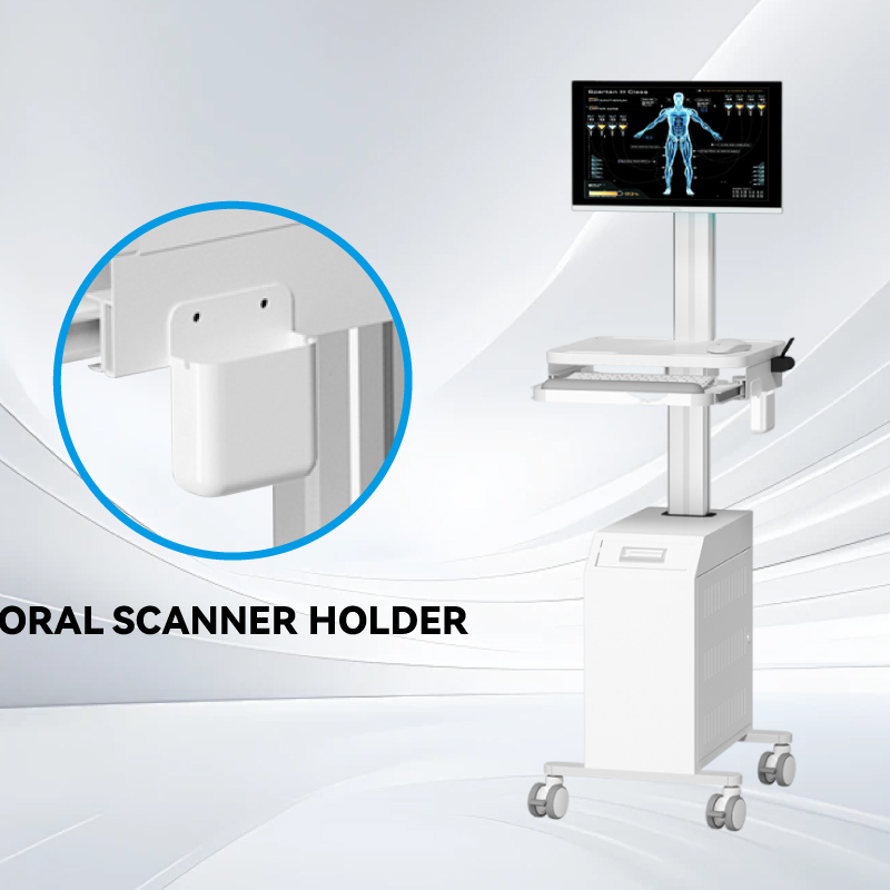 Выдвижная полка для клавиатуры легко интегрируется под рабочую станцию, обеспечивая компактное хранение и быстрый доступ. Она повышает эффективность рабочего процесса и эргономичность для медицинского персонала при выполнении вычислений рядом с пациентом. Открытое отделение для хранения, расположенное спереди, обеспечивает мгновенный доступ к часто используемым медицинским принадлежностям, обеспечивая обзор и удобство во время процедур.